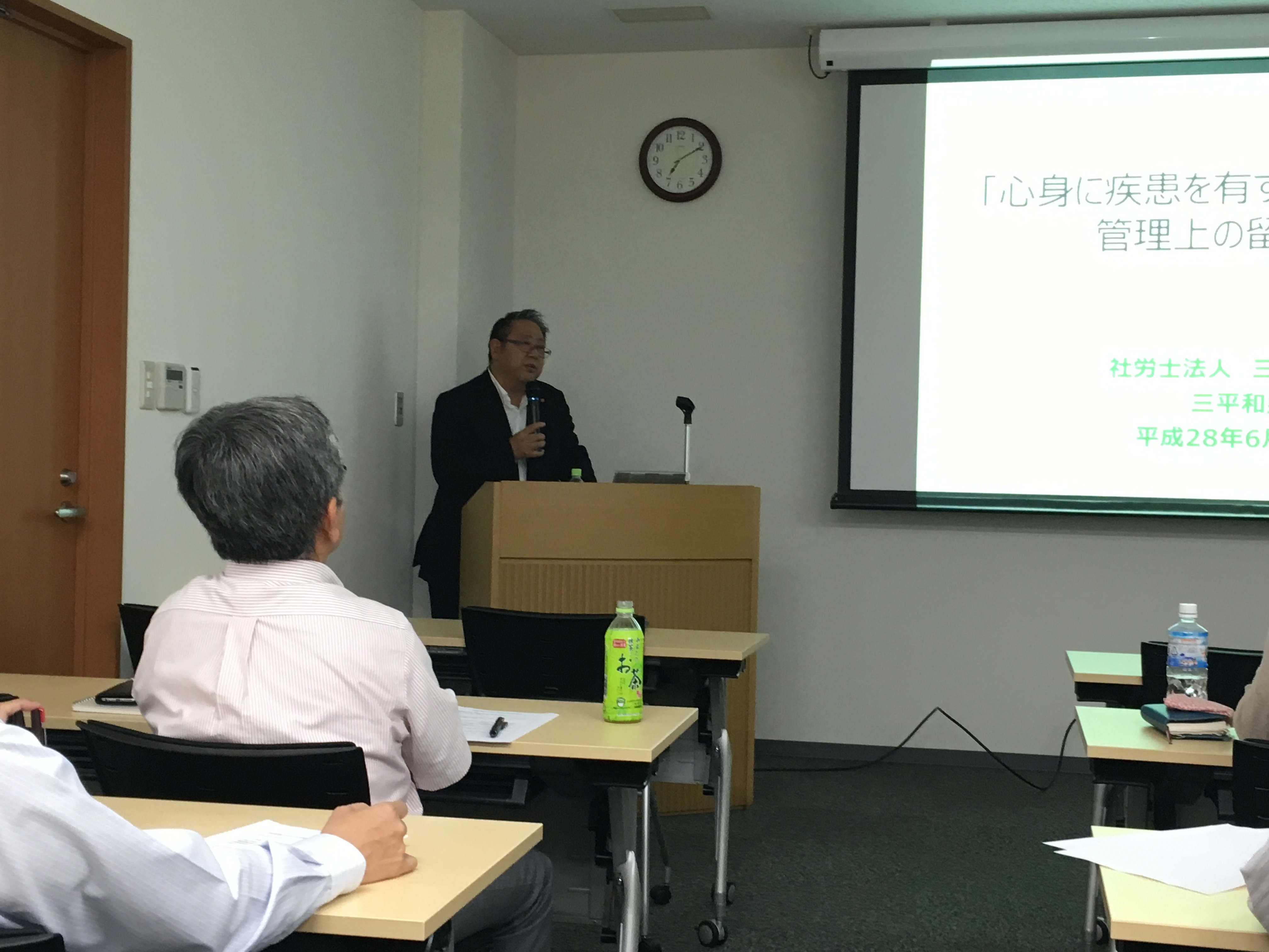 「心身に疾患を有する社員の雇用管理上の留意点」という内容につきまして、代表三平よりお話しさせていただきました。