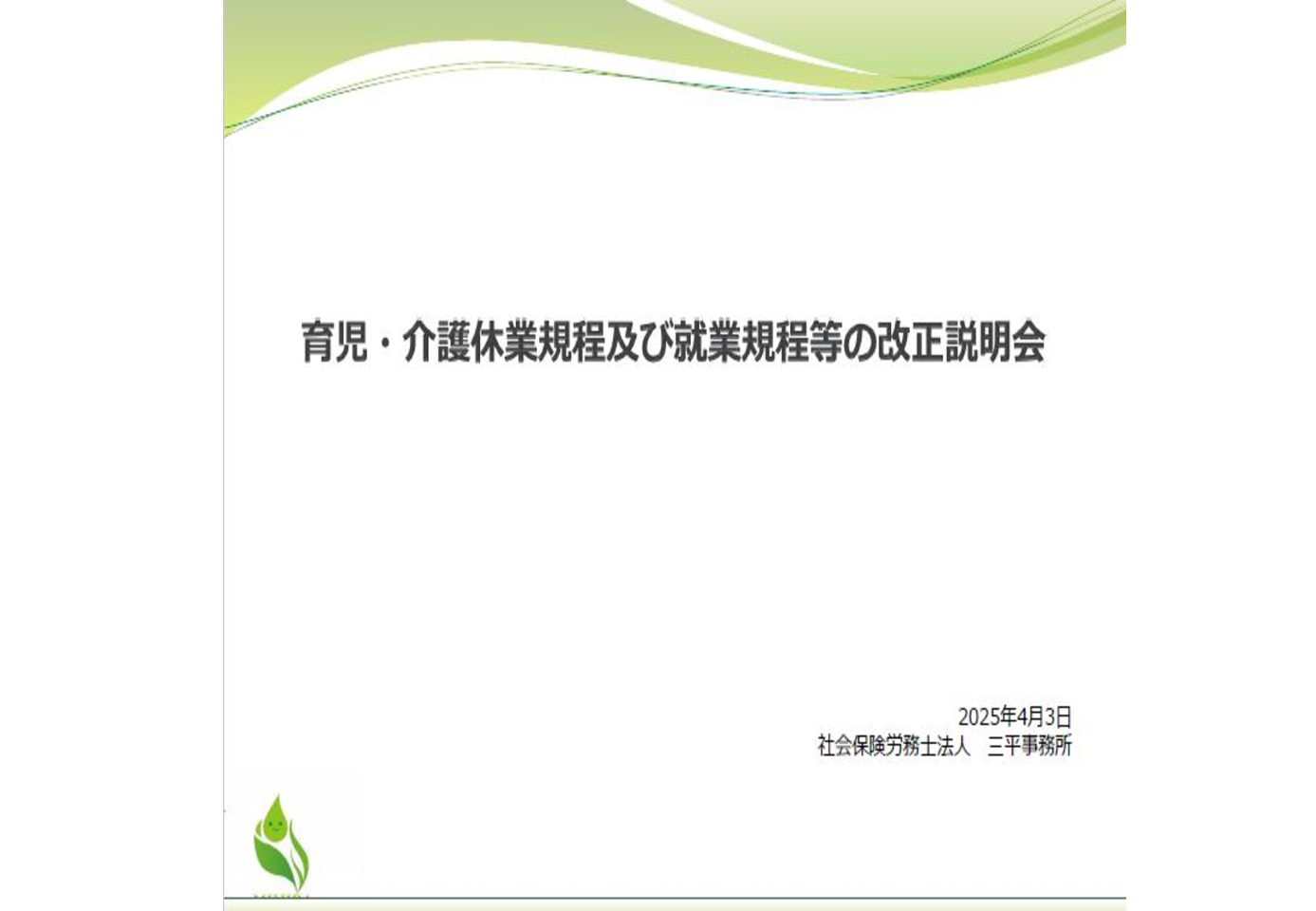 顧問先様の就業規程・育児介護休業規程の改定にあわせ、職員様向けの説明会を行いました。
